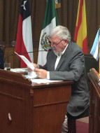 EL PROF. ALBERTO ORGA, FUNDAMENTANDO EL PROYECTO PRESENTADO POR EL, DONDE SE IMPONE EL NOMBRE DE “SUNDBLAD TIERRA DE ESCRITORES”